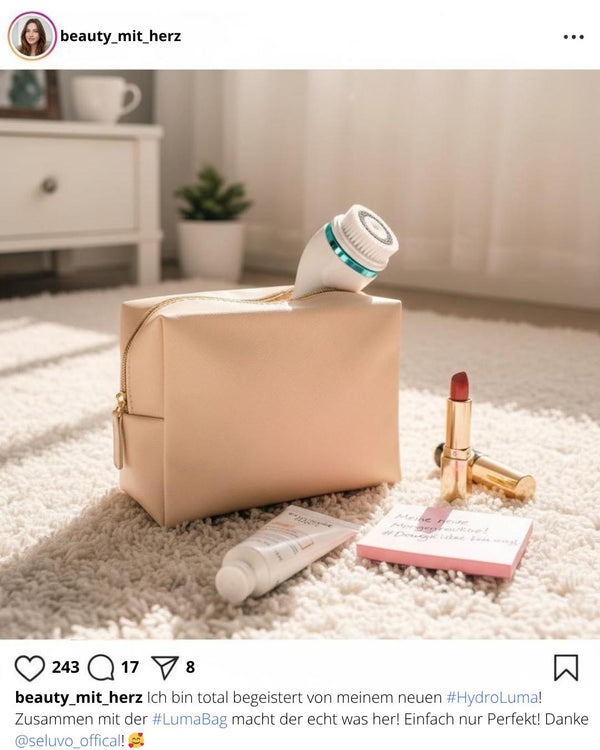 Wasserdicht, Aufsätze in Sekunden wechselbar, familien-hygienisch mit LumaBag. Unser Credo: Sanft ist stark – frischer in Tagen, ebenmäßiger in Wochen. 30 Tage Geld-zurück.