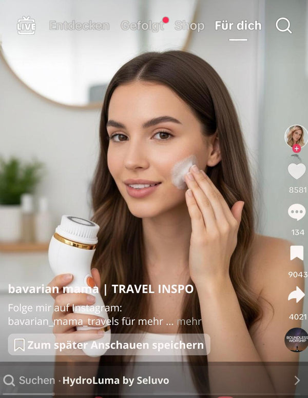 Ich hatte dieselben Probleme wie so viele: empfindliche, unreine Haut, zu wenig Zeit und zu viele Produkte. Abschminktücher brauchte ich viele um das Gesicht sauber zu bekommen, Waschlappen scheuerten meine Haut und es dauerte ewig – mein Bad war voll, meine Routine kompliziert. Also habe ich beschlossen, es einfacher und sanfter zu machen. So entstand Seluvo mit HydroLuma: eine 4-in-1 Lösung, die porentief reinigt, beruhigt und den Alltag familienfreundlich macht – ohne Drama.